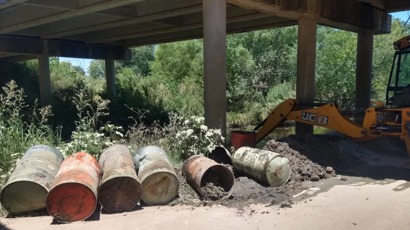 La semana pasada, autoridades de la Dirección de Salud Ambiental fueron convocadas ante la presencia de tambores de 200 litros con posible producto contaminante en el puente de arroyo el Colman sobre ruta 14. También interviene la Justicia.