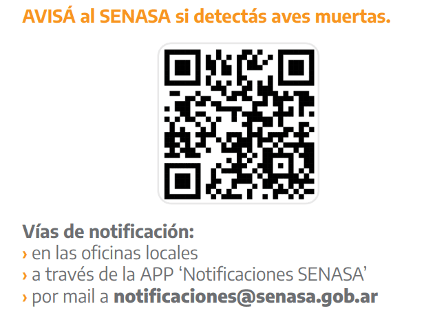 En este sentido, el SENASA ofrece varias vías de notificación, como las oficinas locales, la APP ‘Notificaciones SENASA’ o el correo electrónico notificaciones@senasa.gob.ar. Los productores deben estar alertas y notificar al SENASA si detectan aves muertas o síntomas de la enfermedad, como depresión, incoordinación, temblores, problemas respiratorios, diarrea y edema facial, entre otros.