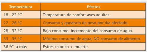 Por lo tanto, la meta del avicultor debe ser: mantener la temperatura ambiente con el objetivo de gastar la menor cantidad de energía por unidad de peso corporal para mantener la temperatura normal en pollos de engorde.
