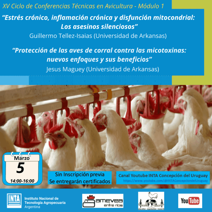 Bajo el lema «Avicultura: Innovación y Bienestar Animal», el evento se llevará a cabo el próximo martes 5 de marzo a las 14:00 horas, a través del canal de Youtube del INTA Concepción del Uruguay. Este ciclo promete ser una ventana hacia los avances más recientes en el cuidado, la salud y la eficiencia en la producción avícola.