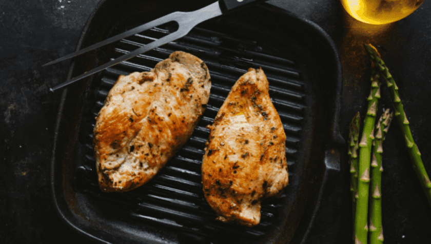 - Tempere las pechugas de pollo con sal y pimienta negra al gusto.