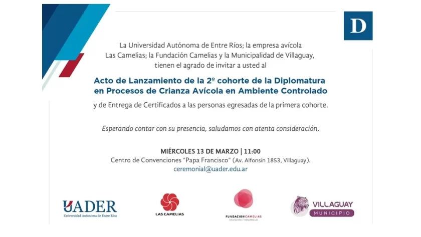 Para obtener más información e inscribirse, los interesados pueden comunicarse a través del correo electrónico: diplomatura.avicola@uader.edu.ar.
