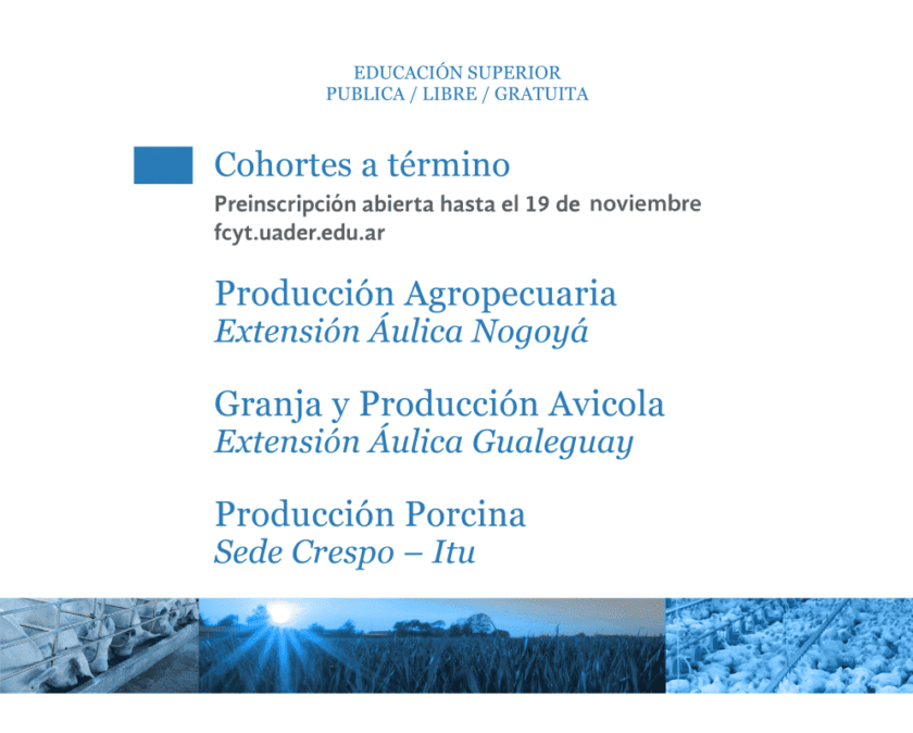 Se trata de 3 tecnicaturas orientadas a la producción avícola, agropecuaria y porcina, con gran impacto en la zona y que permiten una rápida inserción laboral.